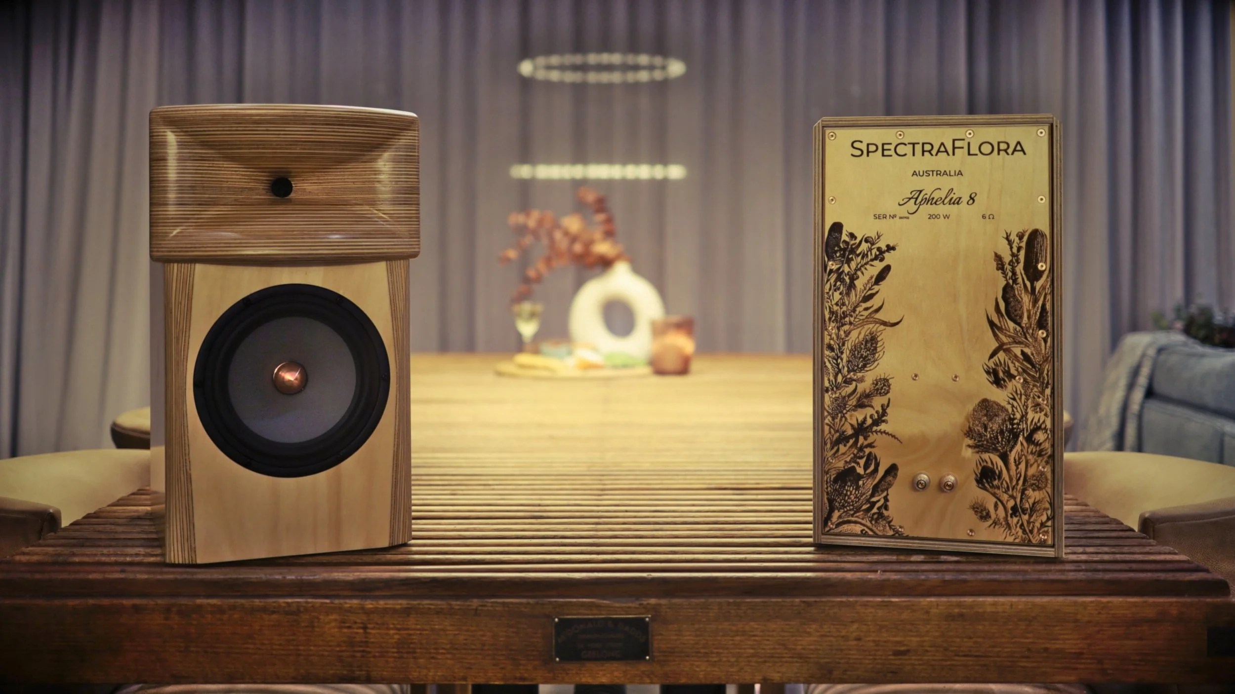 All SpectraFlora loudspeakers are designed and built entirely in Victoria, Australia, using responsibly sourced Australian native timbers. Each speaker is a handcrafted work of art—timeless in appearance, uncompromising in build quality, and custom-finished to suit the customer’s space. Each speaker is designed to blend seamlessly into the home, not only through its refined physical presence, but through a sonic character that feels natural and unobtrusive in real living spaces.